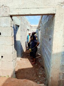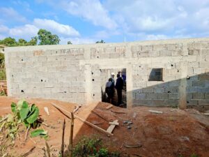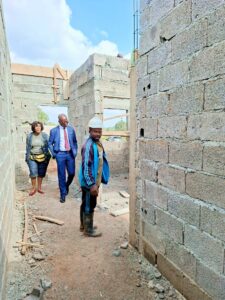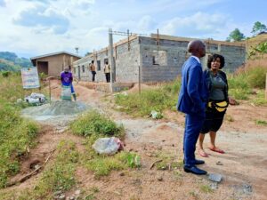 👷♀️👔 Ce lundi 18 novembre 2025, le Col. Maire et Maître d’ouvrage, Gisèle Tsangue, a effectué une importante visite sur le chantier susmentionné situé à Dodji à côté de la Sous-préfecture. Elle était accompagnée du Délégué départemental du MINDDEVEL pour les Bamboutos.